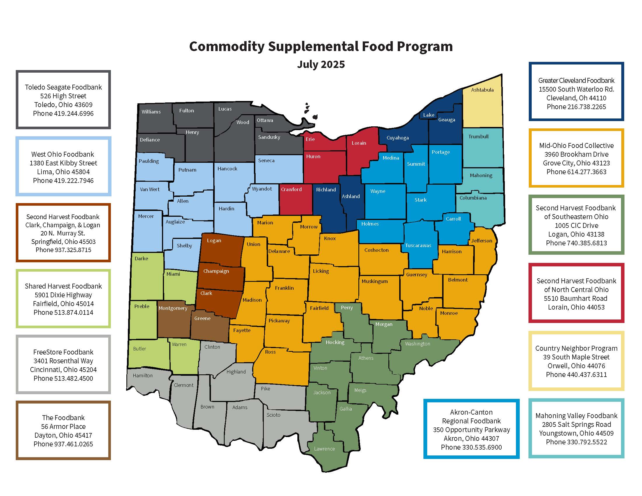 A federal nutrition assistance program that provides low-income, elderly Ohioans with a monthly box of food.